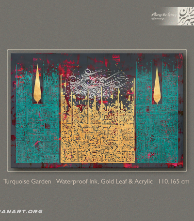 تماس بگیریدتابلو نقاشیخط باغ فیروزه از مجموعه باغ ایرانی، اجرا شده با رنگ اکریلیک و مرکب ضدآب؛ الهامگرفته از نمادهای باغ ایرانی با ترکیب رنگهای فیروزهای و ساختاری هندسی.