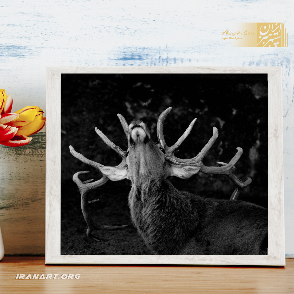 قطعه عکس سیاه و سفید زیست بوم ایران، گوزن ایرانی