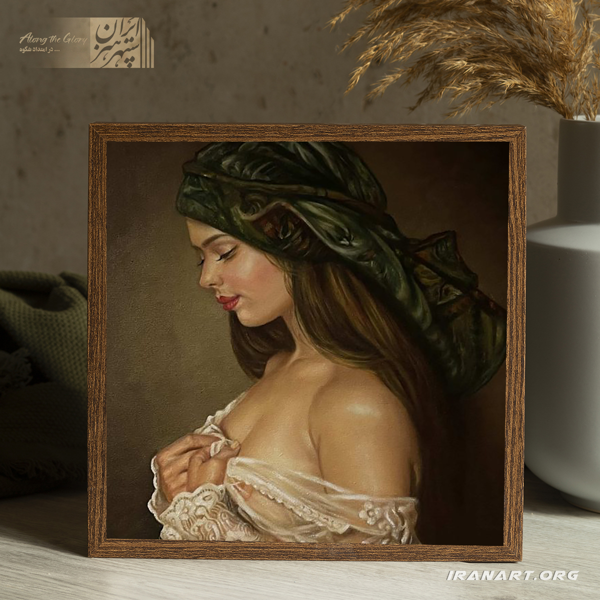 تابلو نقاشی رنگ روغن «دختر جوان» اثری آرام، لطیف است که لحظهای ساده اما تأثیرگذار را به تصویر میکشد.